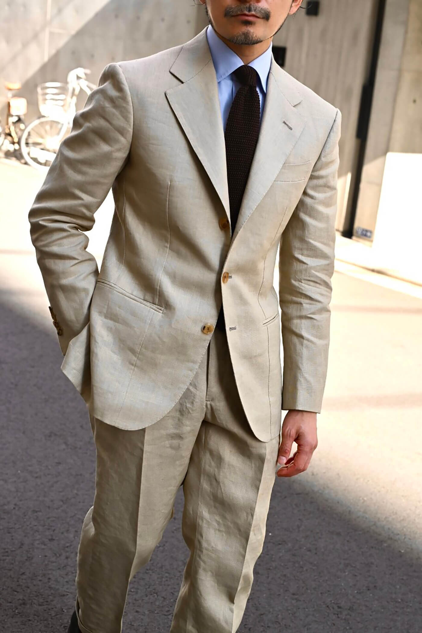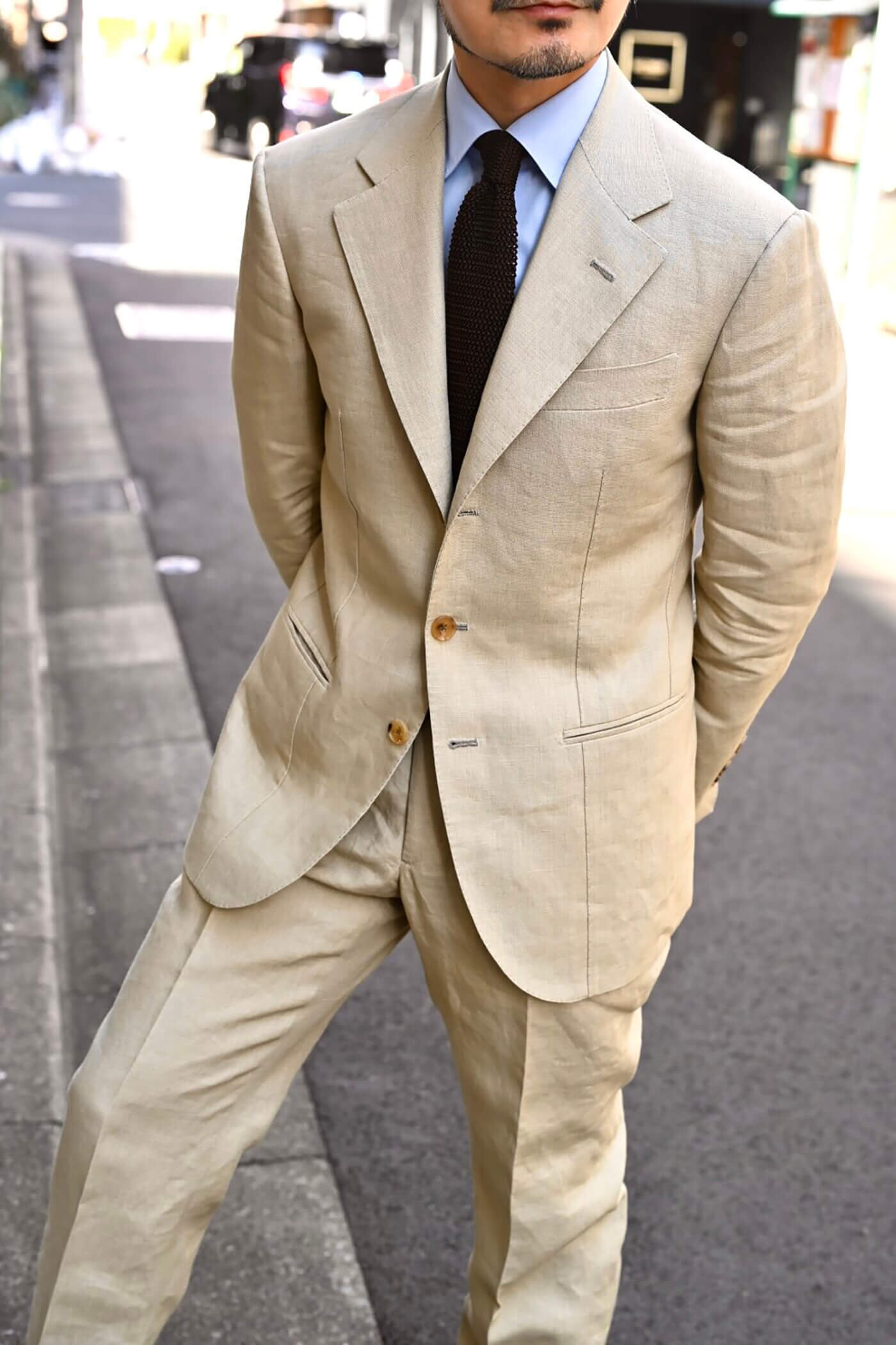 アイリッシュリネンコレクションに含まれるSPENCE BRYSONのTROPICALというクオリティーで仕立てたツーピーススーツ。