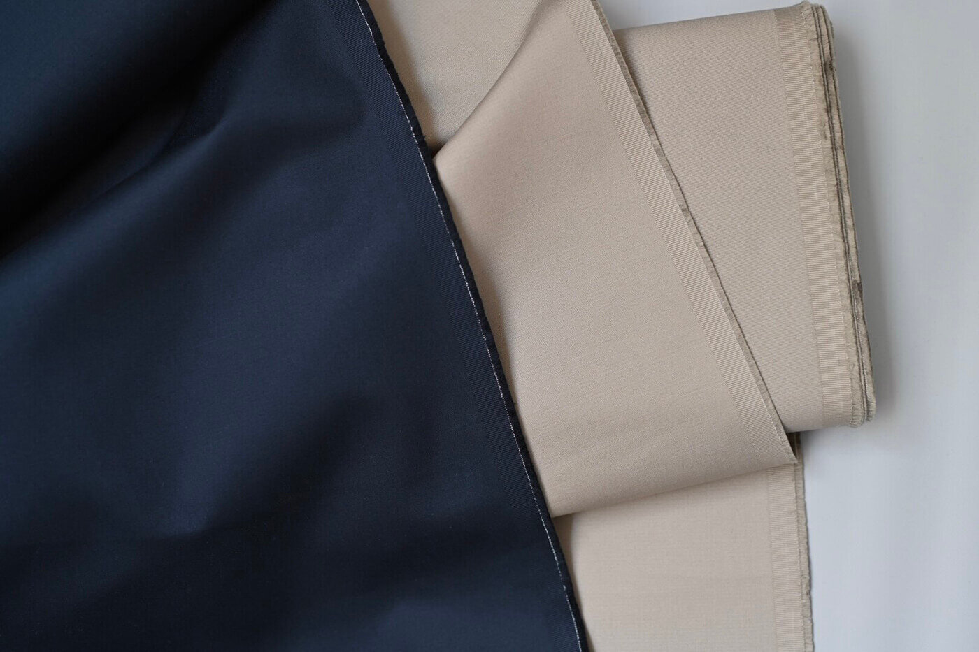 デッドストックのコットン、ネイビーとグレーがかったベージュの2色。