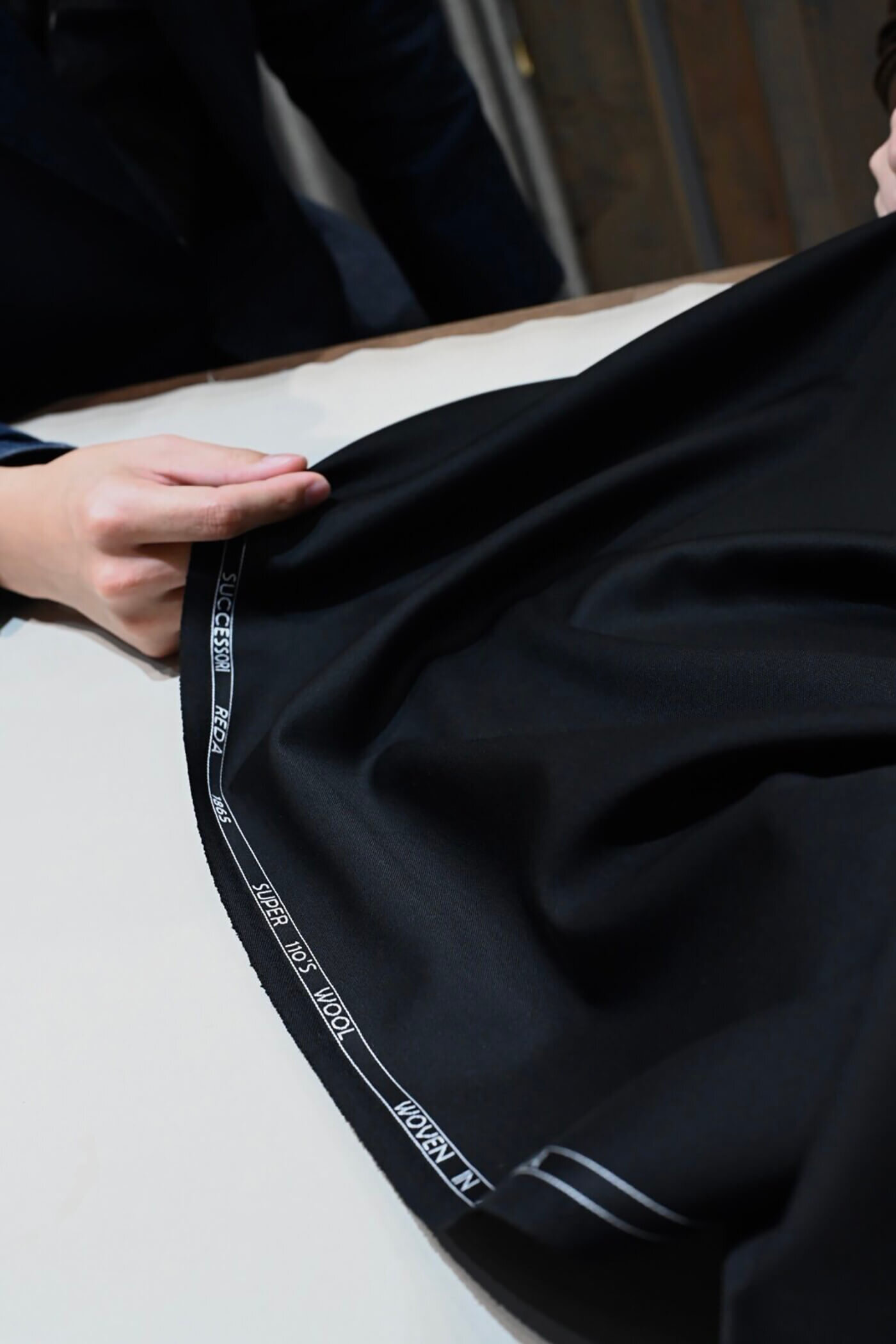 生地は、2025年DORSO新春オーダーフェアでご用意をしていた"CERIMONIA BLACK"をお薦めさせていただきお選びいただきました。
