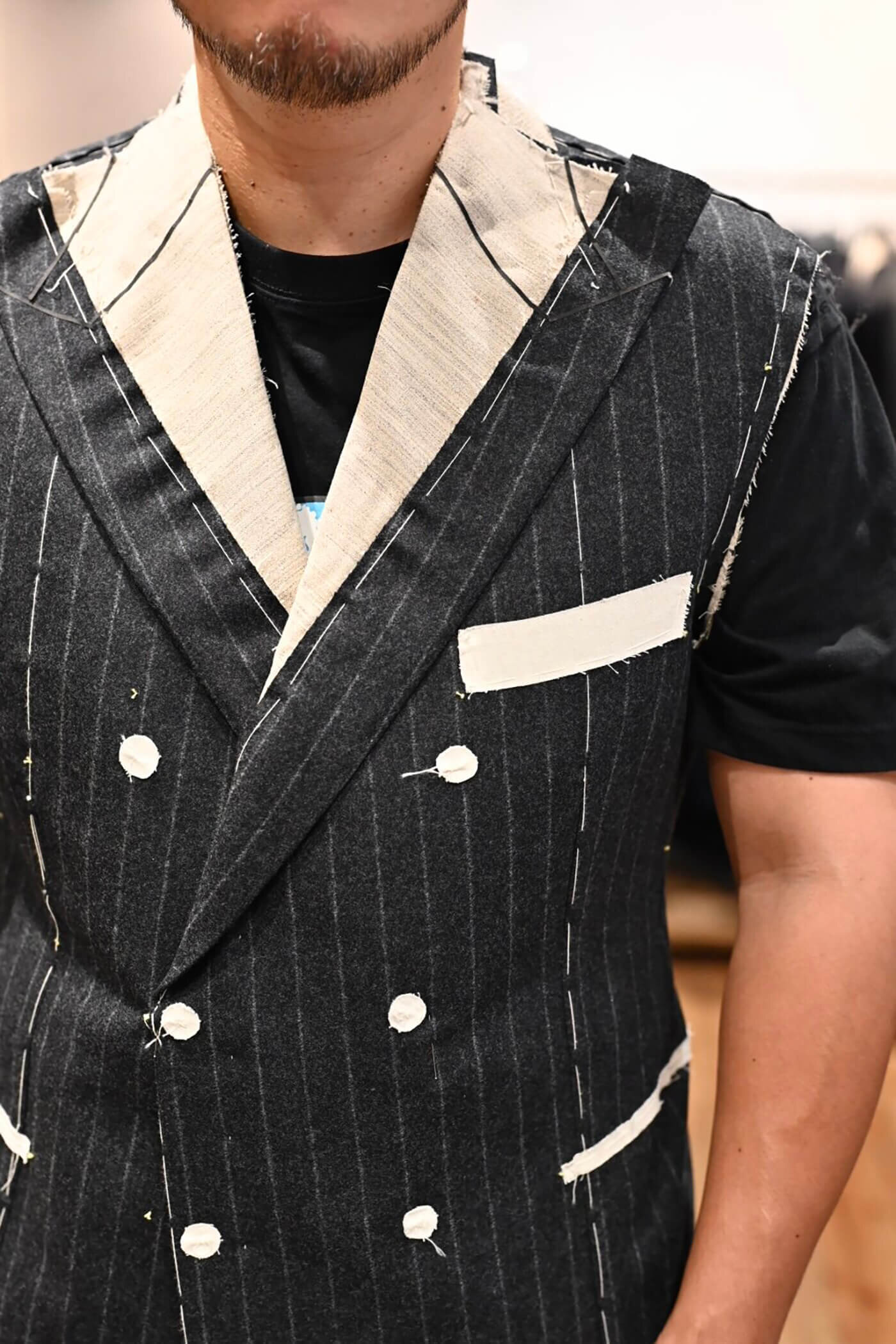 博多でお会いしてから約2ヶ月後、東京にお仕事でお越しのタイミングでDORSO店舗にお越しいただき仮縫いをさせていただきました。