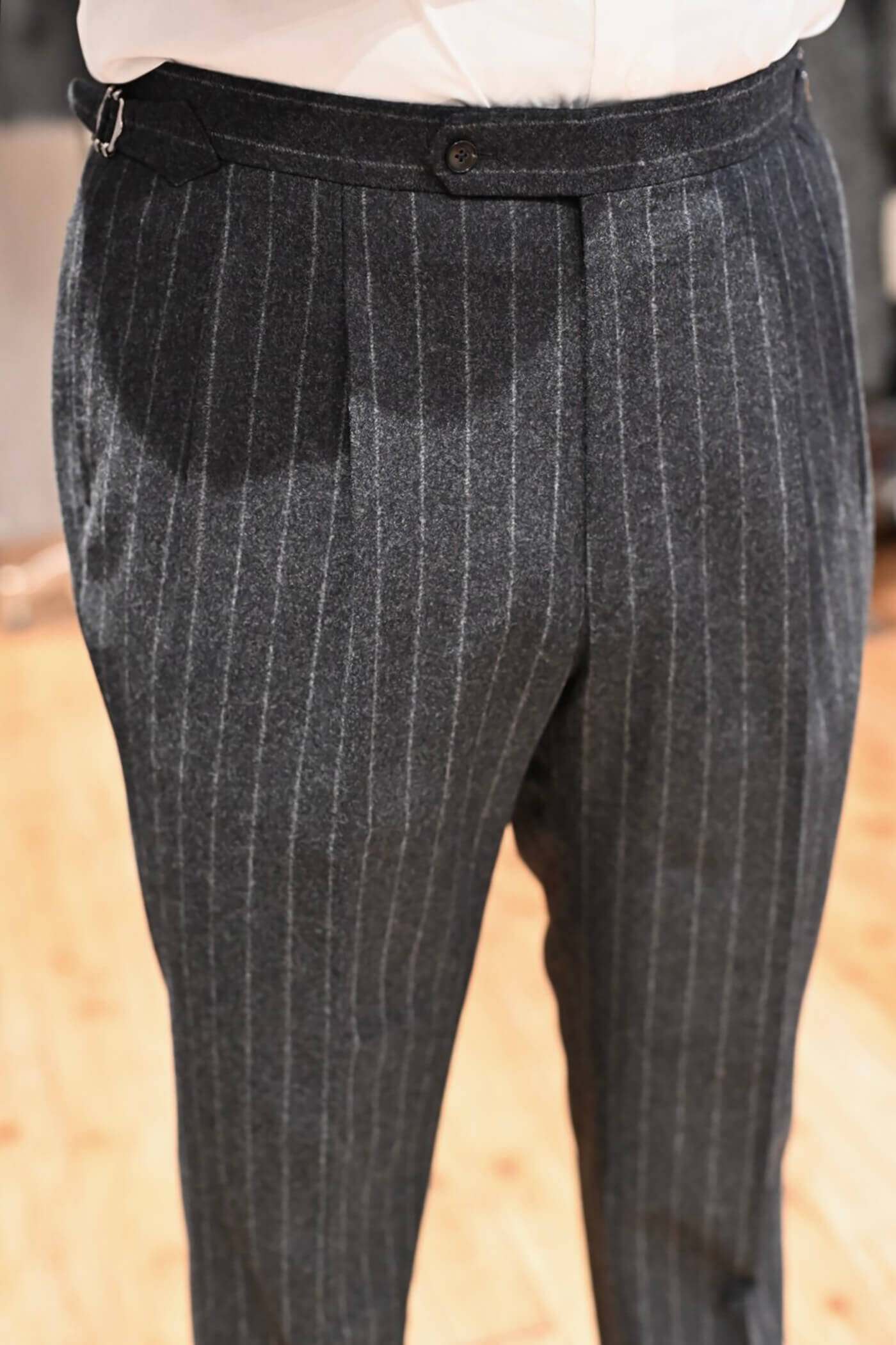 パンツのデザインは、サイドアジャスター付きで仕立てさせていただきました。