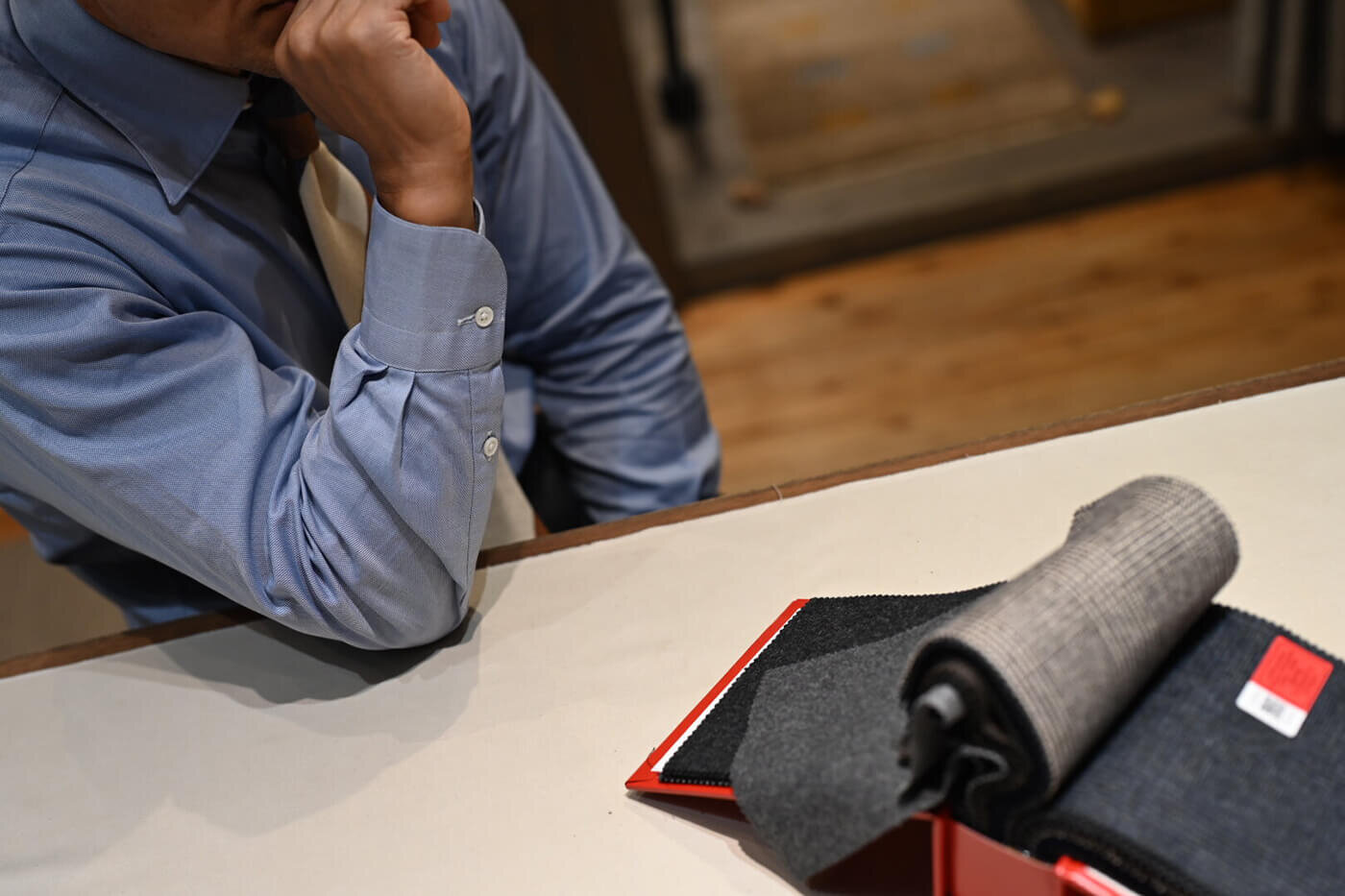 DORSOでスーツをオーダーいただいた場合のご注文からご納品までの流れ、お客様からのご要望やこだわり、私自身が洋服作りに対して大切にしていることについて触れていきます。