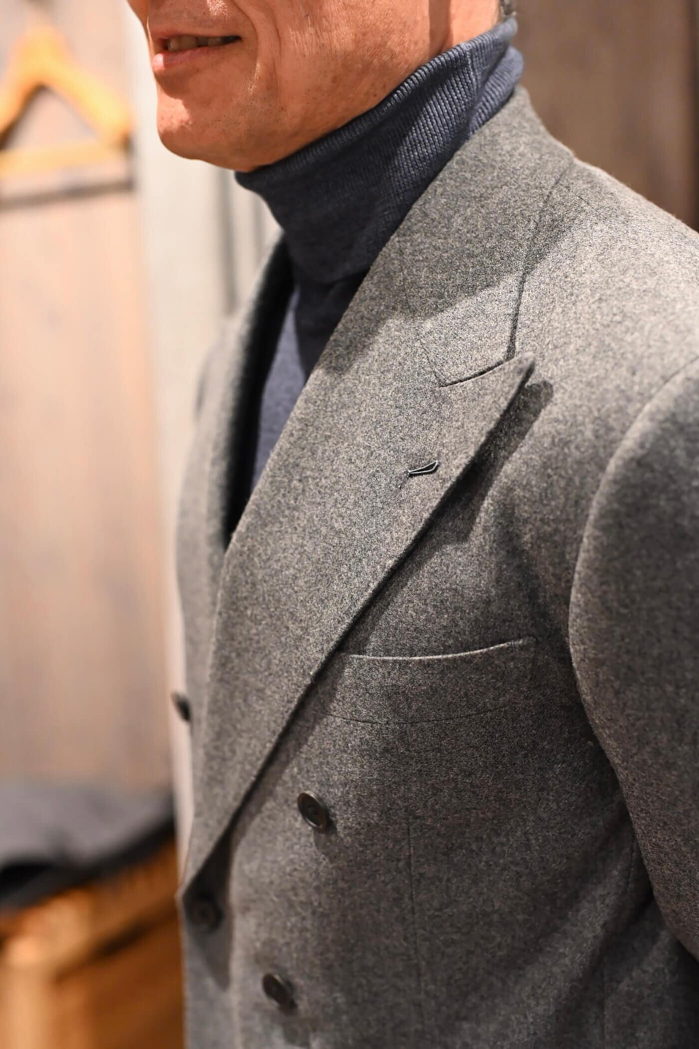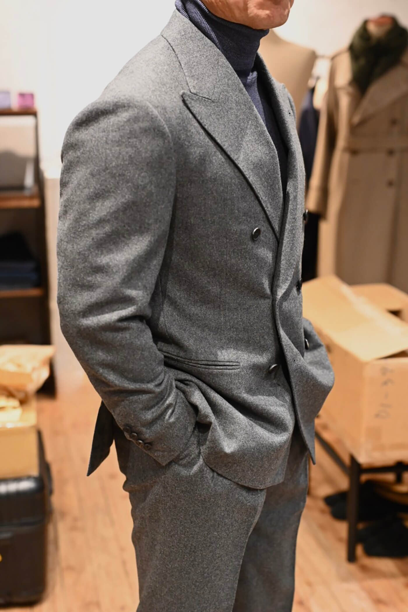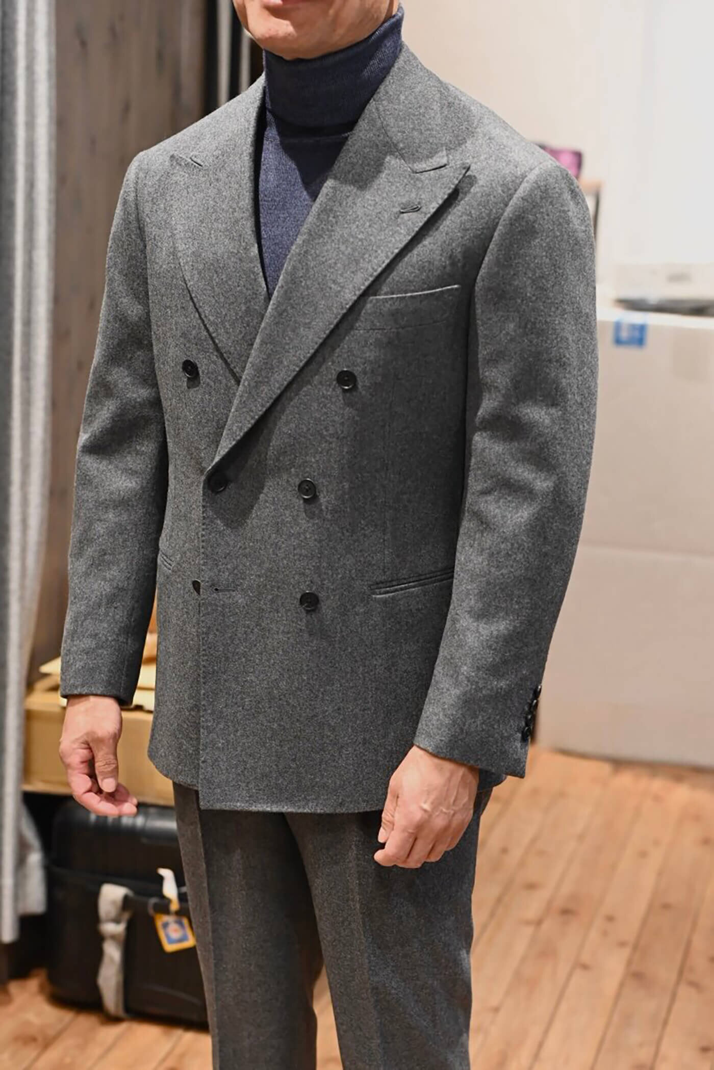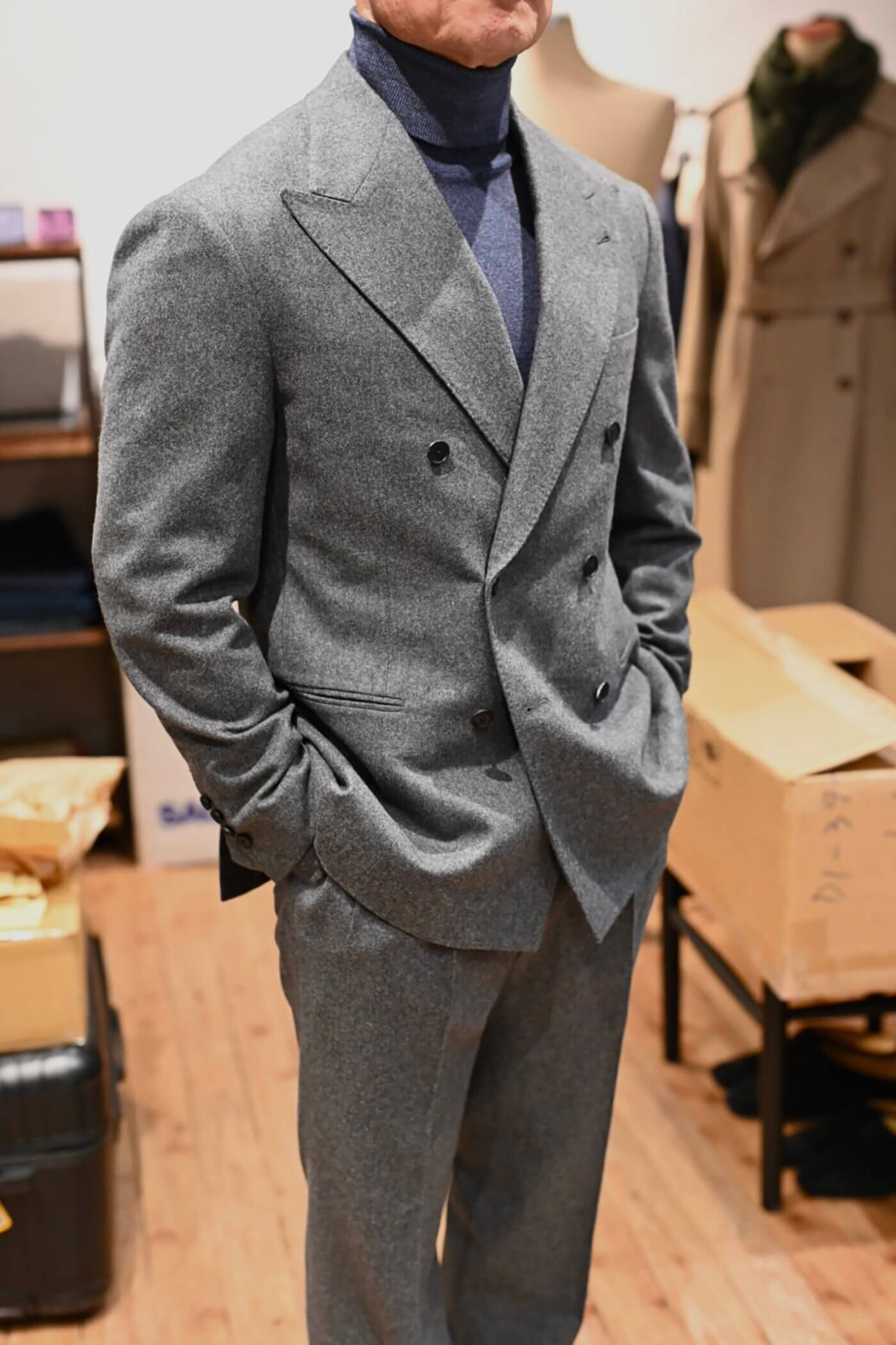 今回のお題である、カチッとしていないけどドレス感もあるフランネルスーツを念頭に置いて仕立てさせていただきました。