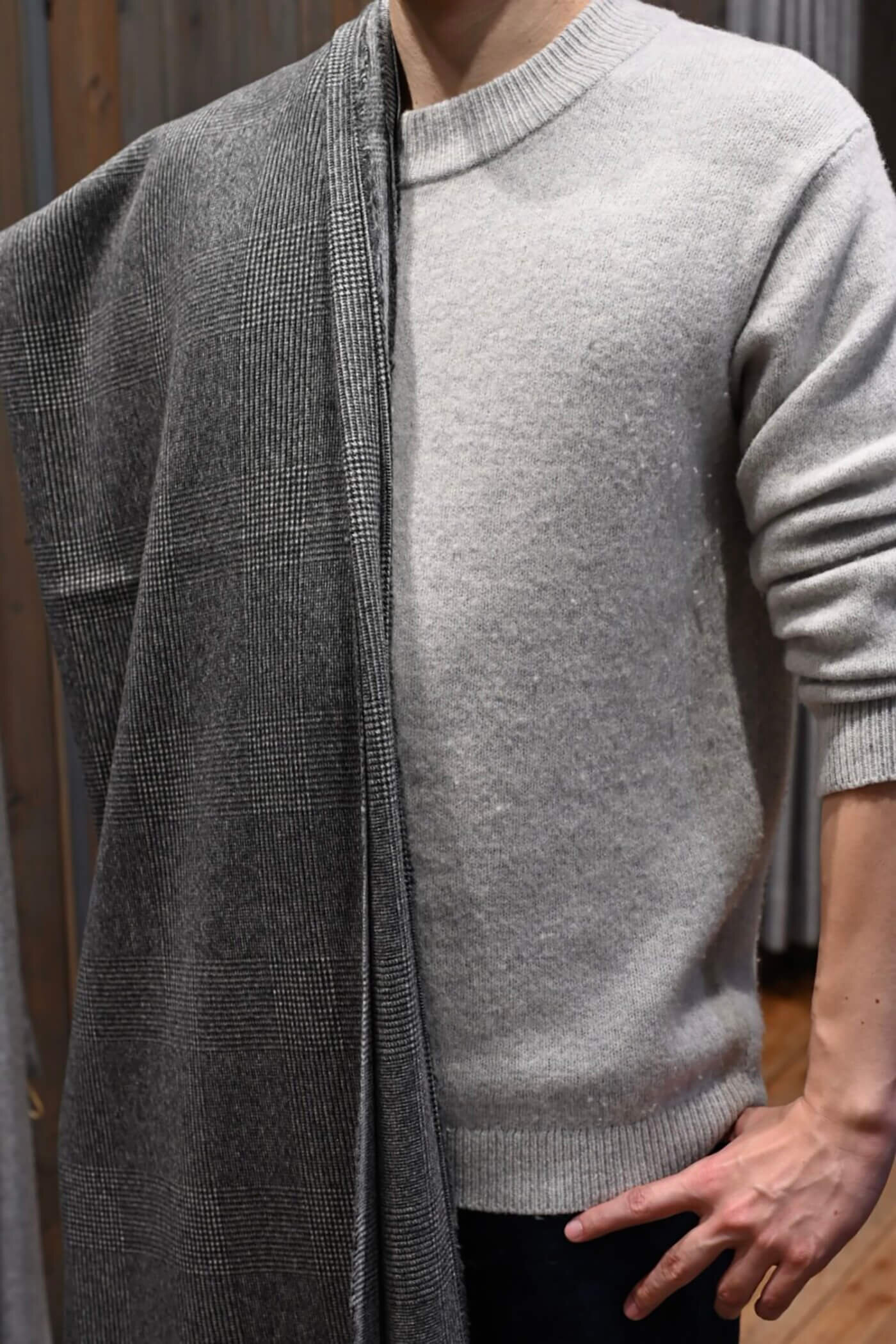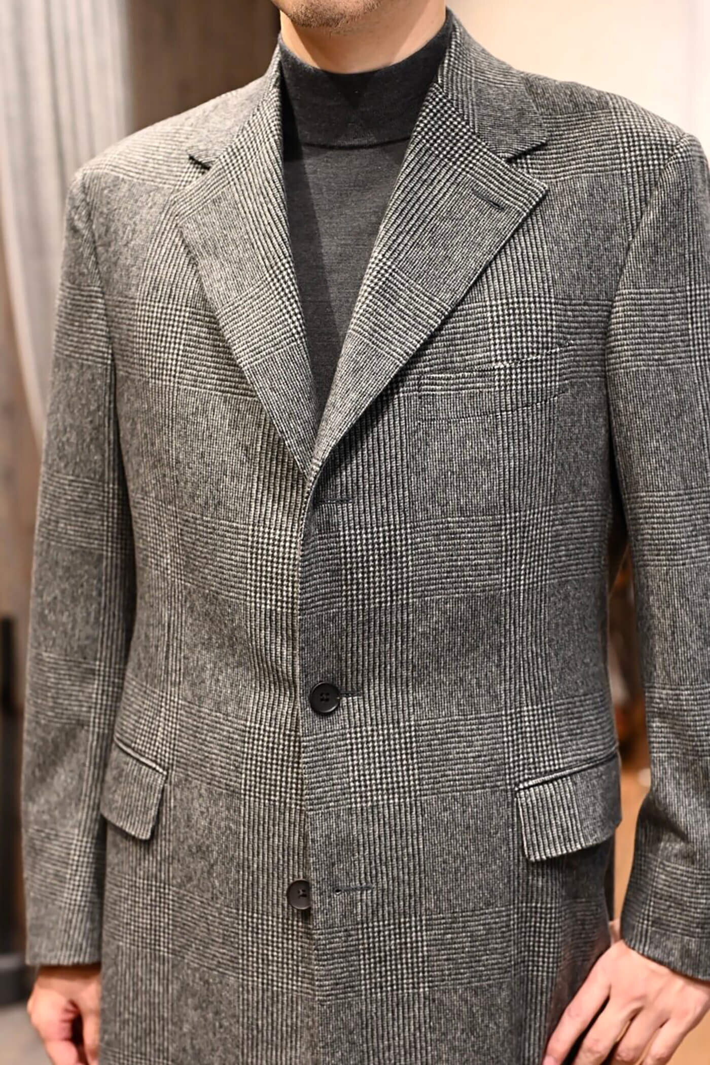 グレンチェックのコート生地は他にも沢山あるのですが、どのようなコートに仕上がるかはチェックのタテヨコのバランスとサイズ感によって変わります。