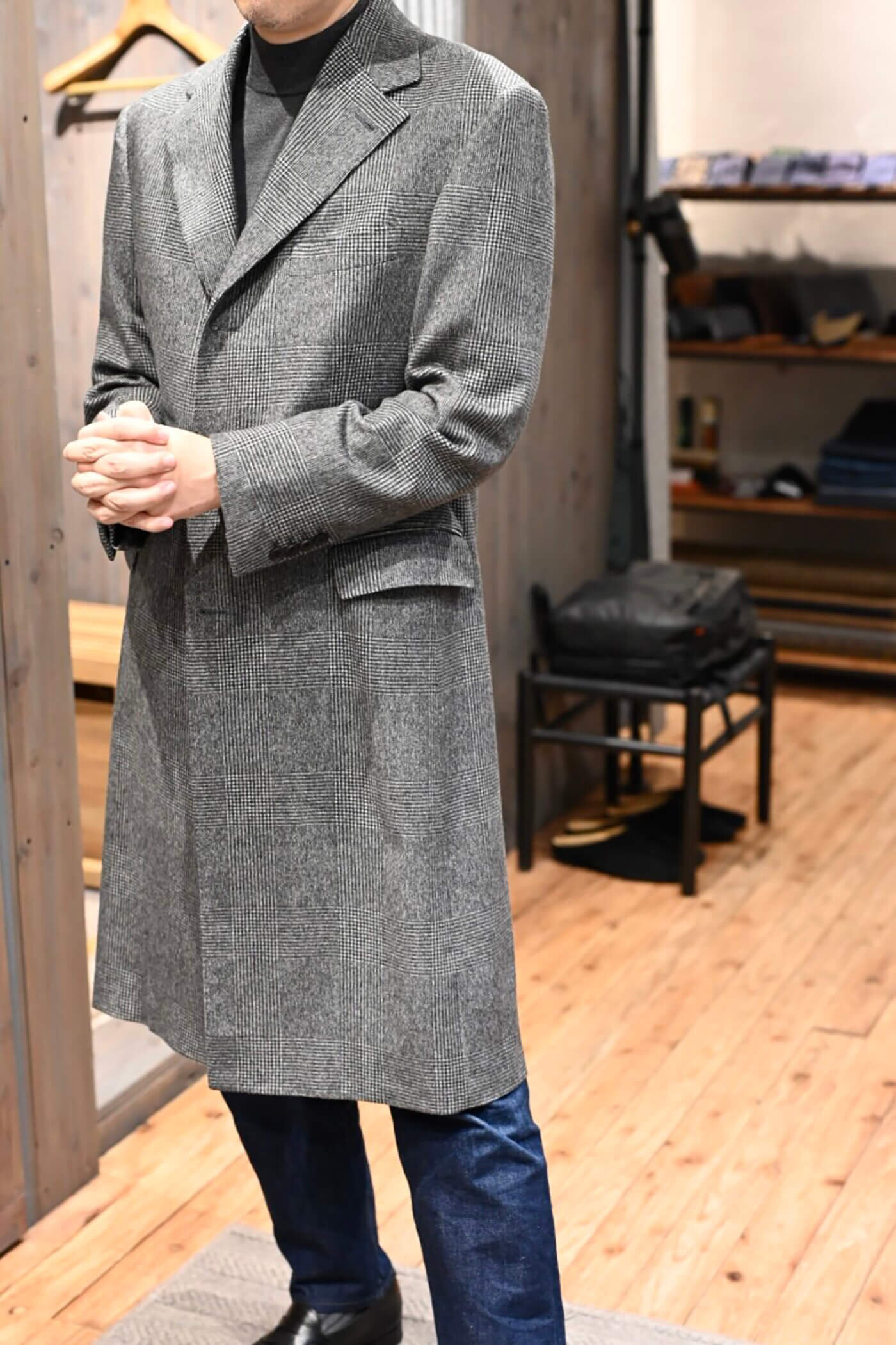今回ご紹介するコートの記事は、DORSOでスーツやジャケットを仕立てさせていただいているリピーターのお客様からいただいたシングルチェスターフィールドコートのオーダーについてです。