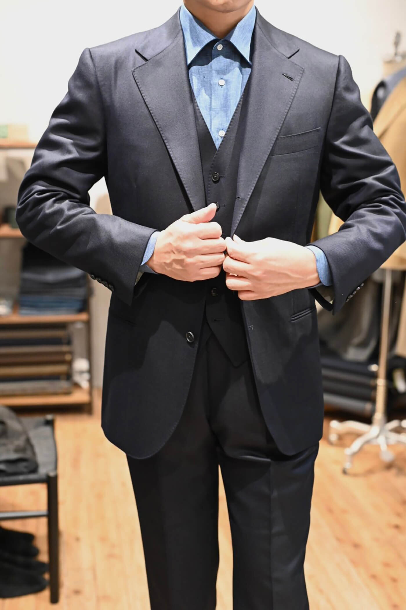 今回のブログでは、SUMMA CUM LAUDE (スンマ クム ラウデ)で仕立てさせていただいたネイビーのスリーピーススーツのオーダーについてご紹介をさせていただきました。