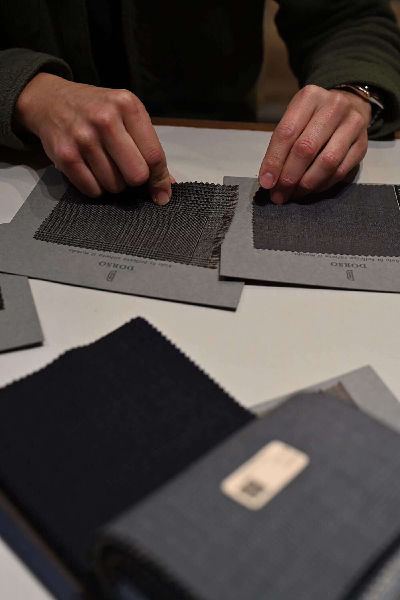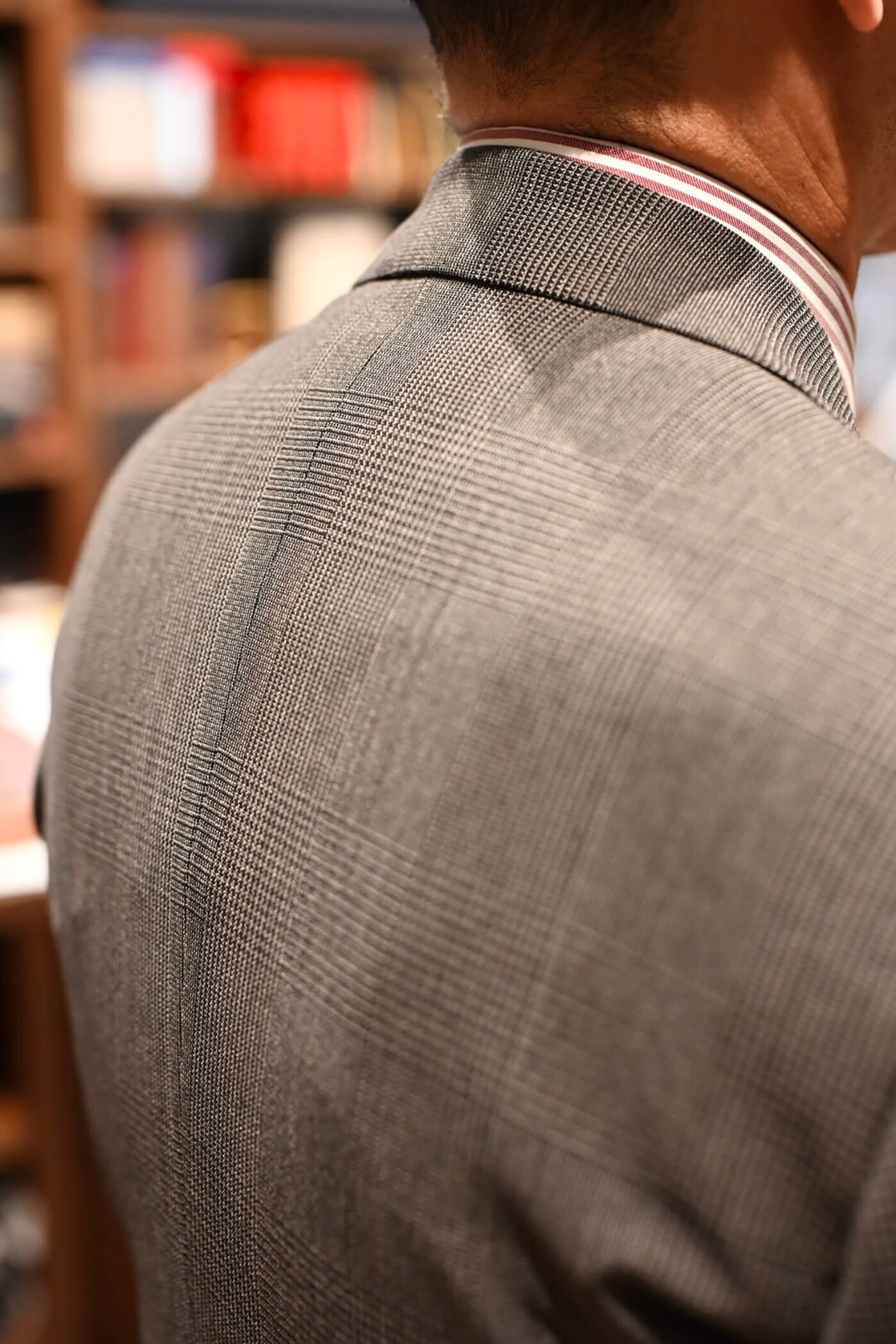 今回のお客様には今まで仕立てさせていただいたスーツの着心地を気に入っていただいていたので、"DORSOハイクオリティーオプション"をお薦めさせていただき
