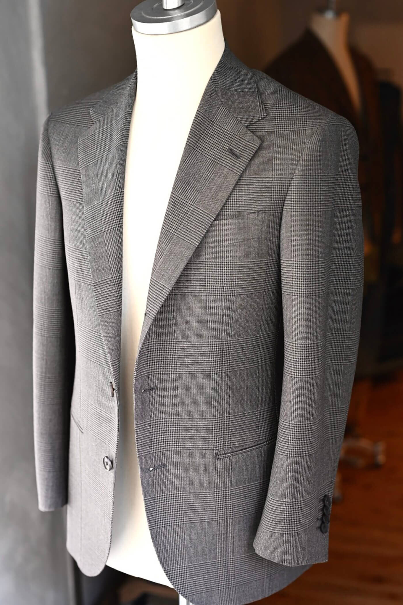 今回のブログでは、VBCの4PLY TROPICALで仕立てさせていただいたグレージュグレンチェックのスーツのオーダーについてご紹介をさせていただきました。