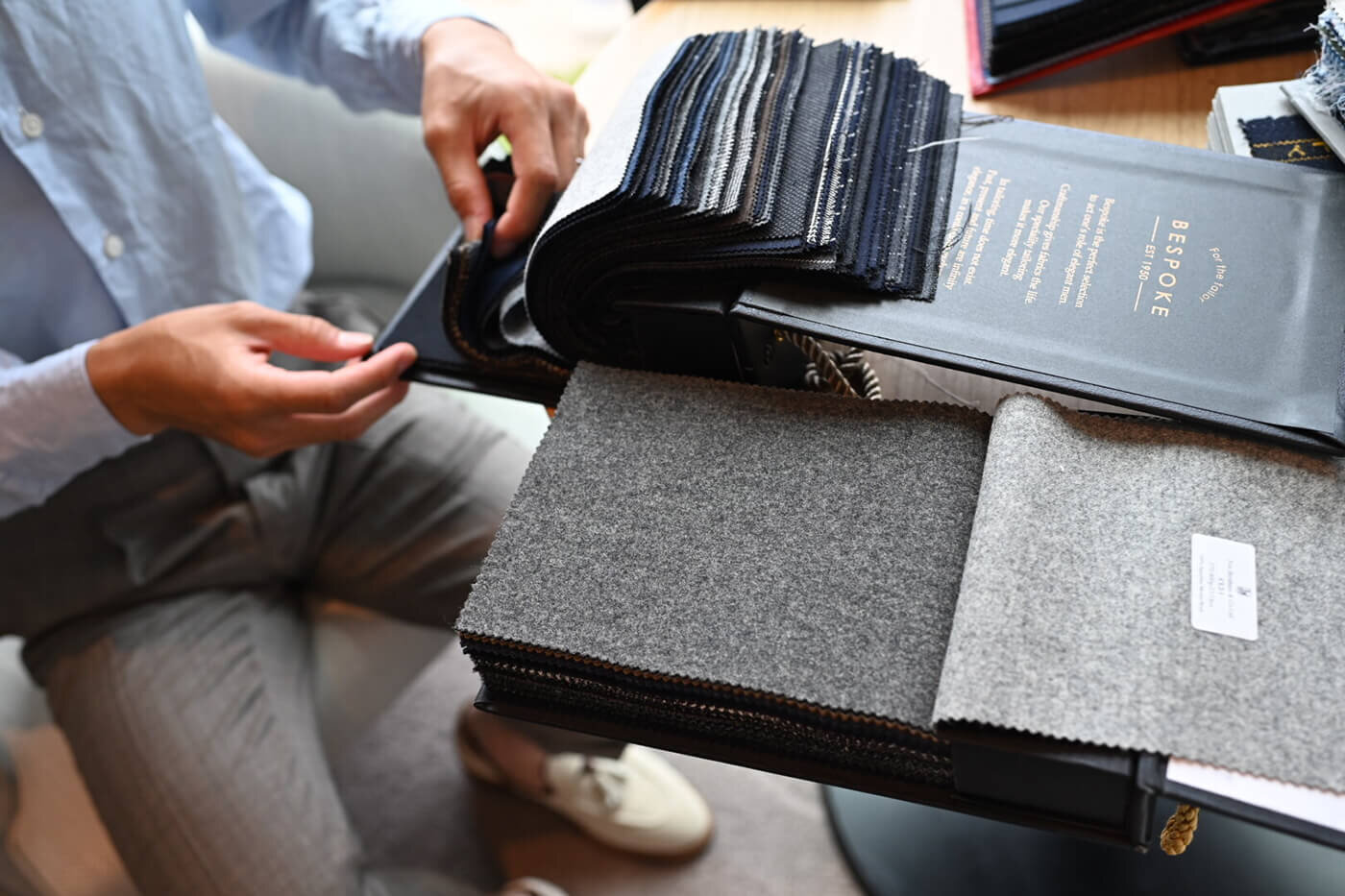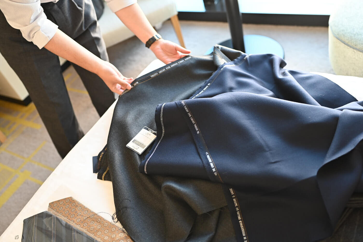 春夏向き・秋冬向き・オールシーズン用・コート生地など、トランクショー開催時の季節に関係なくコレクションのご用意は可能ですので、トランクショーにお越しいただくお客様がイメージされるアイテムをお聞きした上で私がご提案したい素材をピックアップさせていただきます。
